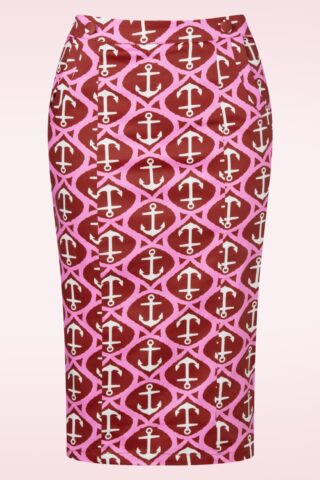 Topvintage exclusive – Anchor Muse pencil rok in rood en roze