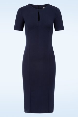 Topvintage exclusive ~ Mira pencil jurk in marineblauw