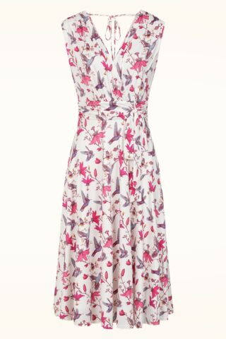 Topvintage exclusive ~ Jane Floral kolibrie swing jurk in wit en multi