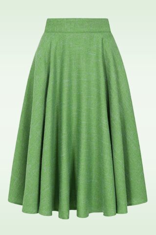 “Simply chic, endlessly versatile!” Deze elegante swing rok in gemêleerd groen met subtiele lichtblauwe accenten is een echte garderobe-klassieker met een moderne twist. Ze heeft handige steekzakken en een flatterend, vrouwelijk silhouet dat sierlijk met je meebeweegt bij elke stap. Uitgevoerd in een stevige maar soepele, grof geweven stofmix met een vleugje viscose, die heerlijk comfortabel draagt en subtiele structuur toevoegt aan je look. * Full swing model: kan gecombineerd worden met een petticoat * It has pockets! * Rits met haaksluiting achterzijde * Valt bij een lengte van 1,70 m over de knie