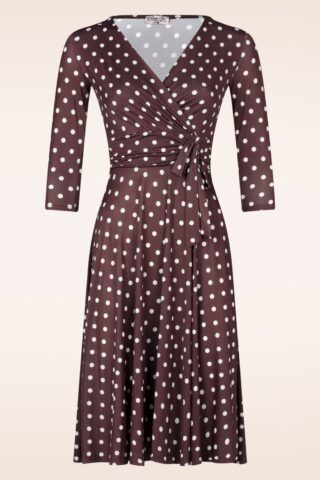 Topvintage exclusive ~ Aria polkadot swing jurk in bruin