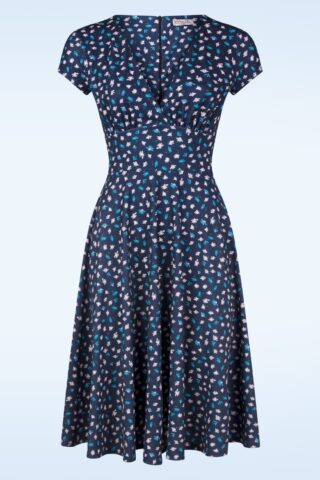 Topvintage exclusive ~ Miley Ditsy swing jurk in navy