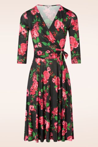 Topvintage exclusive ~ Aria floral swing jurk in zwart en roze