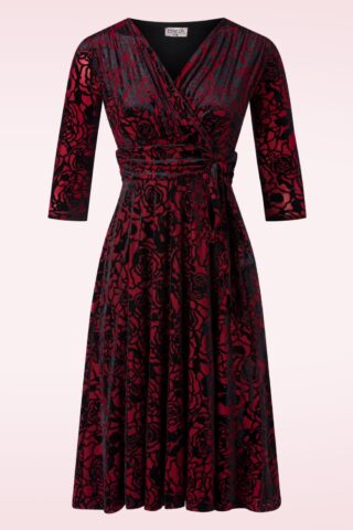 Topvintage exclusive ~ Aria Velvet Flowers swing jurk in dieprood