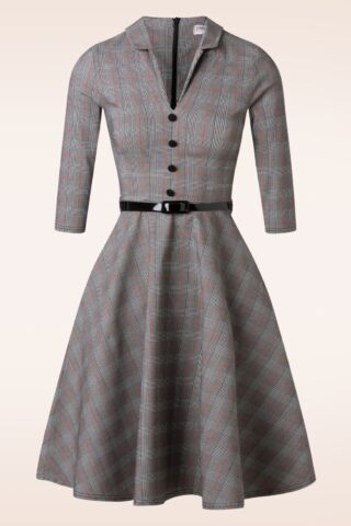 ”Check’ it out! Deze classy semi swing beauty is uitgevoerd in een stevige maar stretchy bengaline achtige stof met een zwart/wit ruitje en een vleugje rood die heerlijk draagt. * Swing model * Puntig kraagje * Sierknopen * 3/4 mouwen * Afneembaar lakriempje, voor een extra ‘snatched’ taille * Met zakken! * Blinde rits achterzijde * Valt bij een lengte van 1,70 m net over de knie * Exclusief bij Topvintage verkrijgbaar