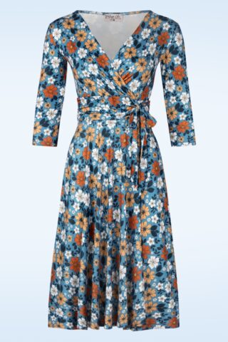 Voel je op en top vrouw in deze Aria floral swing jurk! Ze is uitgevoerd in een soepele en stretchy, licht glanzende, slinky stof in blauw, voorzien van een prachtige bloemenprint in oranjetinten en wit. Tevens is ze licht van gewicht en kreukt ze niet. * Semi-swing model * V-halslijn * Vaste gevoerde overslag * 3/4 mouwen * Geplooide tailleband met vaste strik * Geen rits of knopen; aantrekken en ready to go! * Valt over de knie bij een lengte van 1,70 m * Exclusief bij Topvintage verkrijgbaar