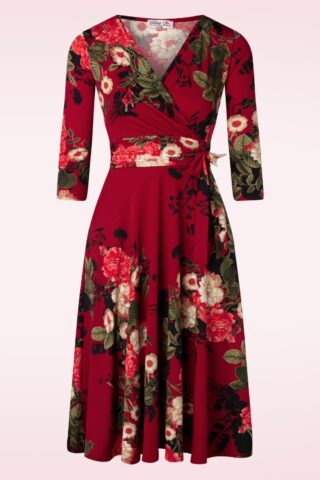Deze elegante 50s Caryl Floral Swing Dress in Wine is een echte vintage beauty die perfect is voor elke gelegenheid! De aansluitende top met 3/4 mouwtjes heeft een prachtige V-halslijn, mooie overslag, flatterende geplooide tailleband met vaste strikbandjes en een zwierige semi-swing rok. Uitgevoerd in een glad en soepel, stretchy, wijnrood slinky stofje voorzien van een bloemenprint dat heerlijk draagt en niet kreukt. Geniet van de complimentjes die je krijgt, zodra je Caryl draagt! * Semi-swing stijl * Gevoerde top * Vaste overslag * 3/4 mouwen * Geplooide tailleband * Vaste strikbandjes * Geen rits of knopen * Exclusief bij Topvintage verkrijgbaar * Valt bij een lengte van 1,70 m over de knie
