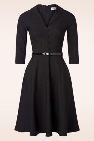Topvintage exclusive ~ Arinde pinstipe swing jurk in zwart
