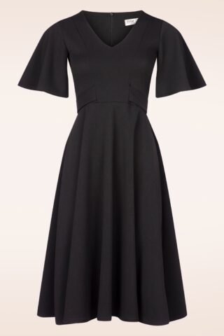 Topvintage exclusive ~ Brenda swing jurk met vlindermouwen in zwart