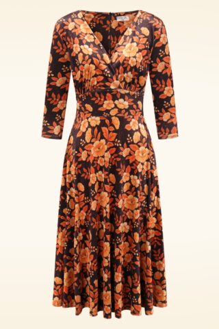 Topvintage exclusive ~ Caroline Floral Velvet swing jurk in zwart en oranje