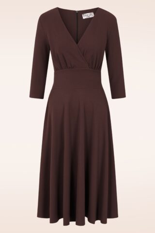 Topvintage exclusive ~ Caroline swing jurk in chocoladebruin