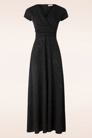 Topvintage exclusive ~ Genna Glitter Maxi Jurk in Zwart