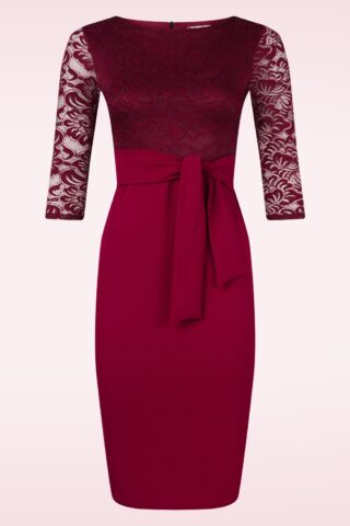 Topvintage exclusive ~ Felicity kanten pencil jurk in wijnrood