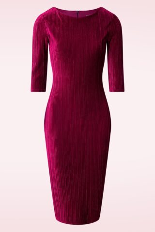 Topvintage exclusive ~ Laura Pleated Velvet pencil jurk in wijnrood