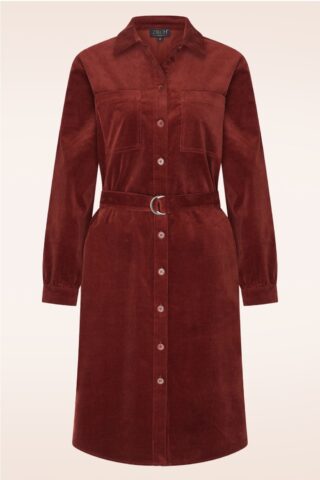 • Tahlia Corduroy blousejurk in mahoniebruin