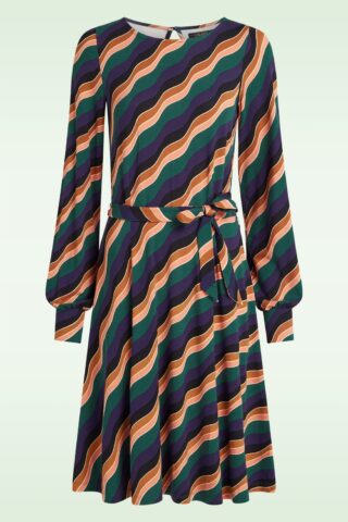 “Wear your groove, one stripe at a time!” Deze semi-swing beauty heeft een ronde halslijn, lange bisschopsmouwen en is uitgevoerd in een zachte, soepele en stretchy EcoVero viscosemix, voorzien van een seventies geïnspireerde print! * Semi-swing model * Ronde halslijn * Lange bisschopsmouwen * Afneembaar striklint, voor een ‘snatched’ taille * Keyhole met knoopsluiting aan de achterzijde * Valt bij een lengte van 1,70 m net over de knie
