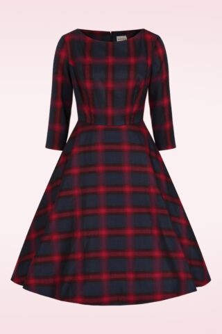 “Checks, charm, and a little mischief under the mistletoe!” Diana is perfect voor het feestelijke seizoen! Ze heeft een boothals halslijn, 3/4 mouwen en een all-over classy ruitjes patroon in rood en blauw. Ze loopt vanaf de taille uit in een zwierige swing rok met handige steekzakjes waardoor jij een super vrouwelijk silhouet krijgt. Uitgevoerd in een stevige en soepel vallende stofmix, die heerlijk draagt.  * Swing model * Boothals halslijn * 3/4 mouwen * Zijwaartse steekzakken * Rits- en haaksluiting achterzijde * Valt bij een lengte van 1,70 m over de knie
