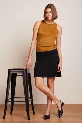 Op zoek naar hét perfecte rokje? 😉 Of je nu brede heupen hebt of juist niet, dit korte rokje is super flatterend voor je figuur. Ze is uitgevoerd in een soepel en stretchy zwarte EcoVero viscosemix, die heerlijk comfortabel draagt. * A-lijn model * Brede band die zowel in de taille als op de heup gedragen kan worden * Geen rits of knopen; aantrekken en ready to go! * Valt bij een lengte van 1,70 m boven de knie * De afgebeelde top is niet verkrijgbaar in onze shop