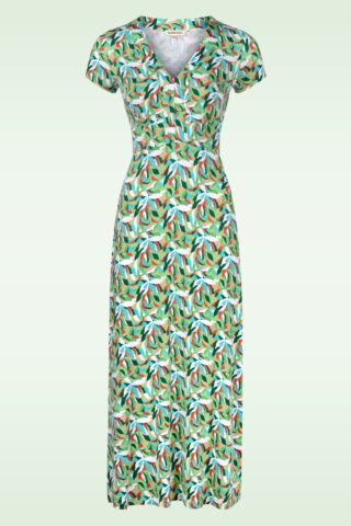 “Simply irresistible, just like Layla.” Deze elegante Layla cross-over jurk is een echte vintage beauty, perfect voor elke gelegenheid! De aansluitende top heeft een prachtige V-halslijn, een mooie overslag, speelse strikbandjes die je zowel los als gestrikt kunt dragen én flatterende plooitjes in de zij. Ze is uitgevoerd in een gladde, soepele en stretchy slinky stof in groen, voorzien van een kleurrijke bloemenprint. * Semi-swing stijl * Vaste overslag * Korte mouwtjes * Strikbandjes * Geen rits of knopen * Valt bij een lengte van 1,70 m over de knie * Exclusief bij Topvintage verkrijgbaar