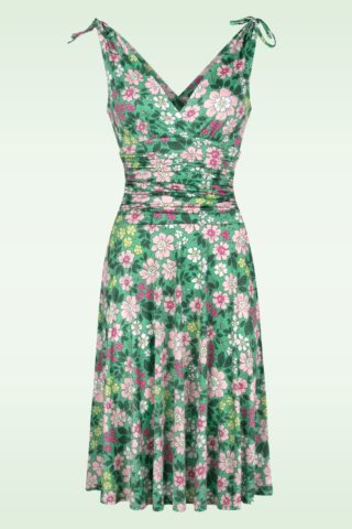 Topvintage exclusive ~ Blooming Belle slinky swing jurk in groen en multi