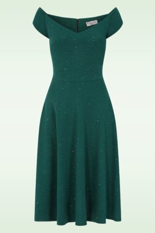 Topvintage exclusive ~ Giorgia glitter swing jurk in smaragdgroen