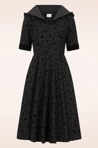 Topvintage Exclusive ~ Garden Whispers swing jurk in zwart en multi