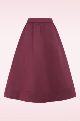 ”Swing your way into winter” met deze 50s Di Di Swing Skirt in Burgundy! Dit fifties pareltje draag je hoog in de taille, vanwaar zij uitloopt in een klassieke, elegante swing rok. De ‘faux’ knoopdetails in de zij vormen niet alleen een speels detail, maar benadrukken je taille ook nog eens extra. Uitgevoerd in een stevige maar soepel vallende, bordeauxrode stof (stretcht amper) die prachtig met je mee beweegt. De winterperiode kan zo mooi zijn, zeker met een rok als Di Di in je kast! 😉 * Full swing rok * ‘Faux’ knoopdetails * Zijwaartse steekzakken * Rits- en haaksluiting achterzijde * Combineer met een van onze petticoats voor een extra feestelijk effect * Valt bij een lengte van 1,70 m over de knie