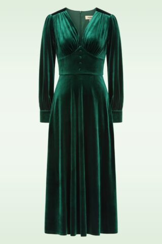 ”Velvet dream dress!” Balia heeft lange pofmouwen met manchetten, plooitjes bij de buste, sierknoopjes en loopt vanaf de taille uit in een flowy midi rok. Ze is uitgevoerd in een ietwat dikkere, maar soepele smaragdgroene stof met de look and feel van luxe fluweel en een fijne stretch, die heerlijk draagt. * Midi jurk * Plooitjes bij de buste * Sierknoopjes * Lange pofmouwen met manchetten * Met zakken! * Blinde rits achterzijde * Geheel gevoerd op de mouwen na * Reikt bij een lengte van 1,70 m tot halverwege de kuit