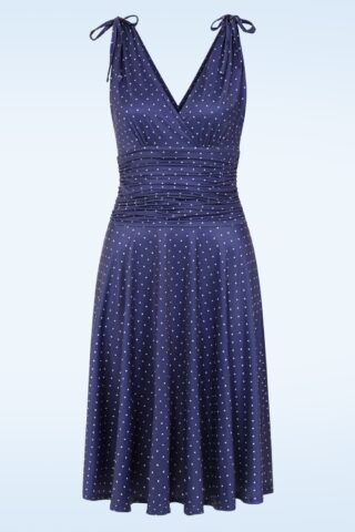 Topvintage Exclusive ~ Grecian pin dot jurk in marineblauw