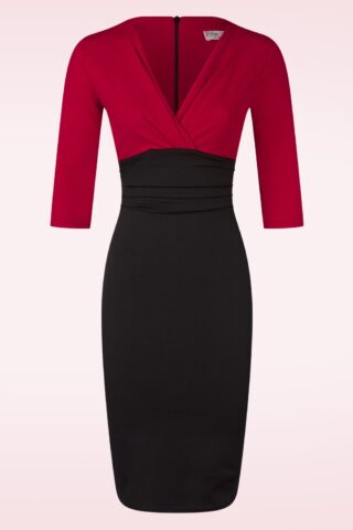 Topvintage exclusive ~ Nehla Pencil jurk in zwart en rood