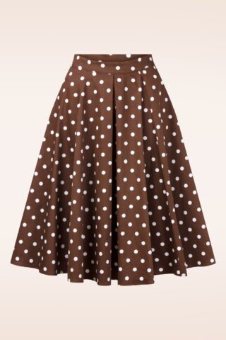 Topvintage exclusive ~ Andrea polka dot swing rok in bruin