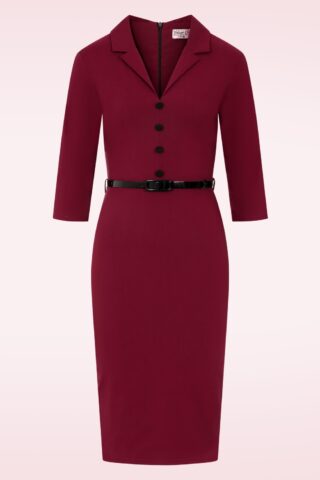 Topvintage exclusive ~ Ruby Allure pencil jurk in wijnrood