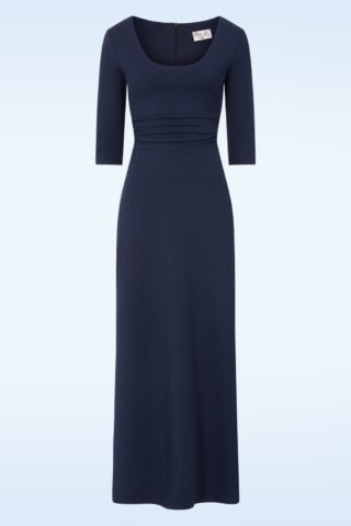 ”The kind of blue that leaves you breathless!” Deze maxi beauty heeft een diepe, ronde halslijn, 3/4 mouwen en loopt vanaf de taille uit in een maxi rok. Uitgevoerd in een soepele en stretchy, navyblauwe crêpe achtige stof die comfy is om te dragen. * Maxi jurk * Gevoerde top * Diepe, ronde hals * Geplooide taille * 3/4 mouwen * Blinde rits achterzijde * Reikt bij een lengte van 1,70 m tot aan de enkel