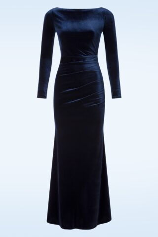 ”Just me and my blue dreams!” Deze beauty heeft een elegante boothals, lange mouwen, plooien in de taille die super flatterend werken en een prachtige uitlopende maxi rok. Uitgevoerd in een soepele en stretchy, marineblauwe stof met de look and feel van luxe fluweel. * Maxi jurk * Boothals * Gevoerde top * Lange mouwen * Flatterende plooien in de taille * Blinde rits achterzijde * Uitlopende maxi rok * Reikt bij een lengte van 1,70 m tot aan de enkel