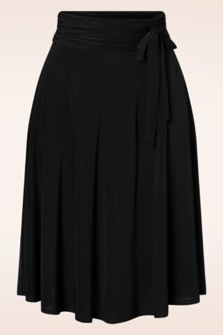 Dagje kantoor of een avondje uit… deze 50s Aliyah Swing Skirt in Black is jouw sidekick! En dankzij haar classy en sophisticated uitstraling maar ook héérlijk draagcomfort, geschikt voor elke gelegenheid 😉 Deze beauty wordt hoog in de taille gedragen waardoor je een prachtig zandloper figuur krijgt, oh la la. Uitgevoerd in een soepel vallende, stretchy, glanzende, zwarte slinky stof die elegant met je mee beweegt. ‘All day, every day, Aliyah all the way!’ * Semi-swing * Geplooide tailleband * Vaste strikbanden * Geen rits of knopen * Valt bij een lengte van 1,70 m over de knie