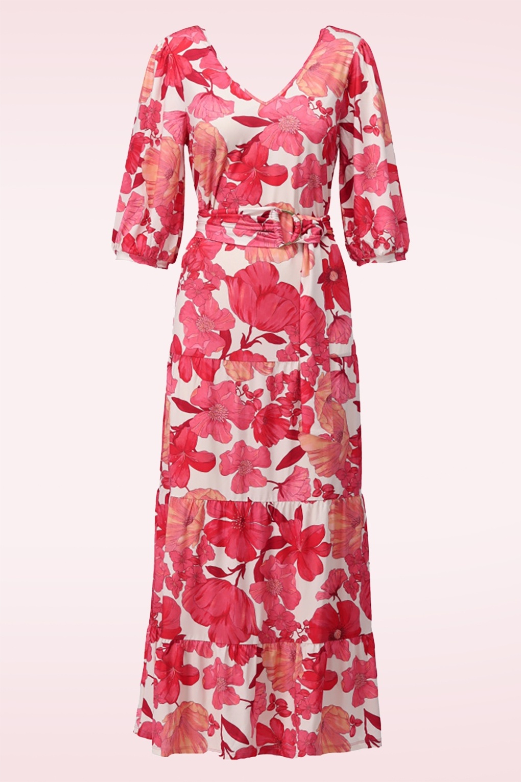 “Bloom boldly.” Deze maxi jurk is gemaakt om in te stralen. Ze is stunning om te zien én ontzettend comfortabel dankzij de soepele, stretchy en gladde slinky stof met StayFresh coating. Afgewerkt met een prachtige bloemenprint in warme roodtinten op een crèmekleurige achtergrond. * Maxi jurk * Volledig gevoerd * V-hals * V-rug * 3/4 pofmouwen voorzien van subtiele schoudervulling * Afneembare riem, voor een extra ‘snatched’ taille * Valt bij een lengte van 1,70 m tot op de enkel * StayFresh coating