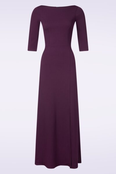 “Maxi length, maximum elegance!” Deze elegante maxi jurk in aubergine straalt tijdloze klasse uit. Ze heeft een subtiele boothals, 3/4 mouwen en een lange, vloeiende rok die je silhouet prachtig flatteert, met een verleidelijke split aan de voorzijde. Uitgevoerd in een soepele, stretchy crêpe-achtige stof die heerlijk comfortabel draagt en sierlijk met je meebeweegt. * Maxi jurk * Gevoerde top * Boothals * 3/4 mouwen * Blinde rits achterzijde * Split voorzijde * Reikt bij een lengte van 1,70 m tot aan de enkel