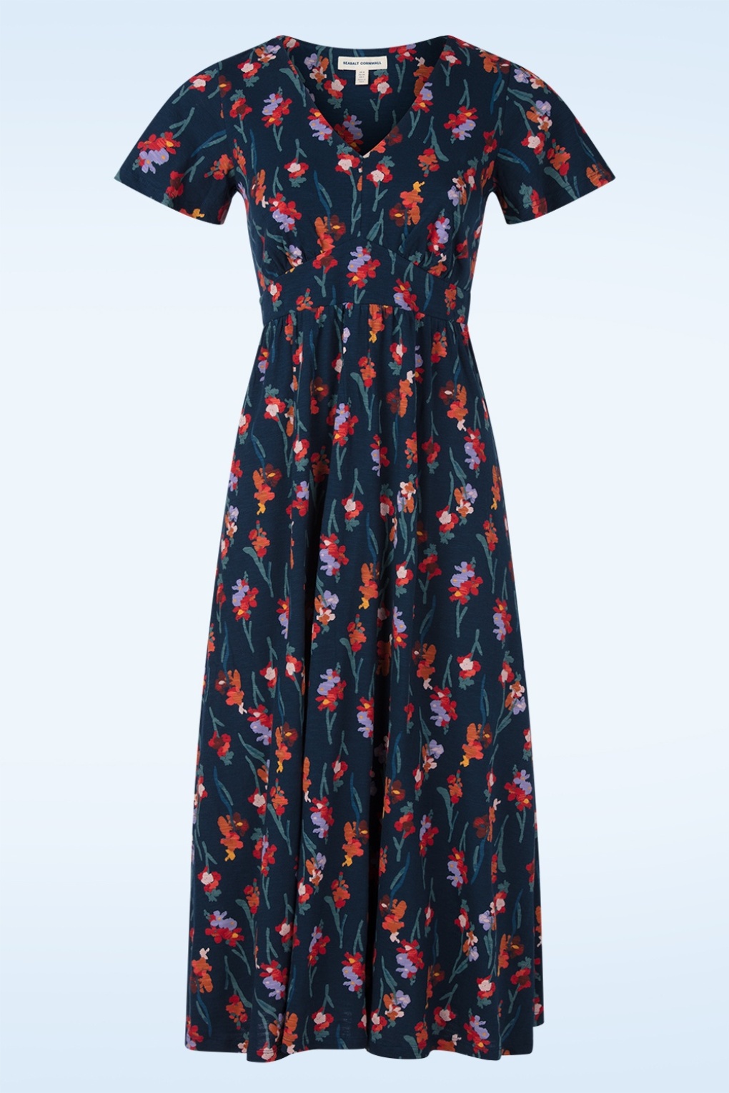 ”Bloom naturally, wear consciously.” Ze is uitgevoerd in een soepele, organische blauwe katoenjersey met een lichte stretch en een lieflijke bloemenprint in rood-, oranje- en paarstinten. Zo comfortabel dat je haar nooit meer uit wilt trekken! * Midaxi jurk * Gevoerde top * V-halslijn * Korte subtiele vlindermouwtjes * Geen rits of knopen; aantrekken en ready to go! * Valt bij een lengte van 1,70 m boven de enkel