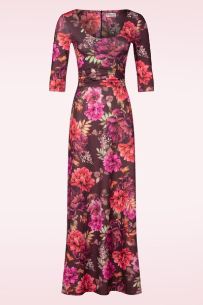 ”Blooms in every step, beauty in every shade!” Deze maxi beauty heeft een diepe, ronde halslijn, 3/4 mouwen en loopt vanaf de taille uit in een maxi rok. Uitgevoerd in een soepele en stretchy crêpe-achtige stof in bordeauxrood, versierd met kleurrijke bloemen die je look een speelse en romantische touch geven. * Maxi jurk * Gevoerde top * Diepe, ronde hals * Geplooide taille * 3/4 mouwen * Blinde rits achterzijde * Reikt bij een lengte van 1,70 m tot aan de enkel