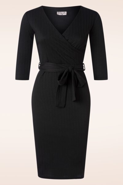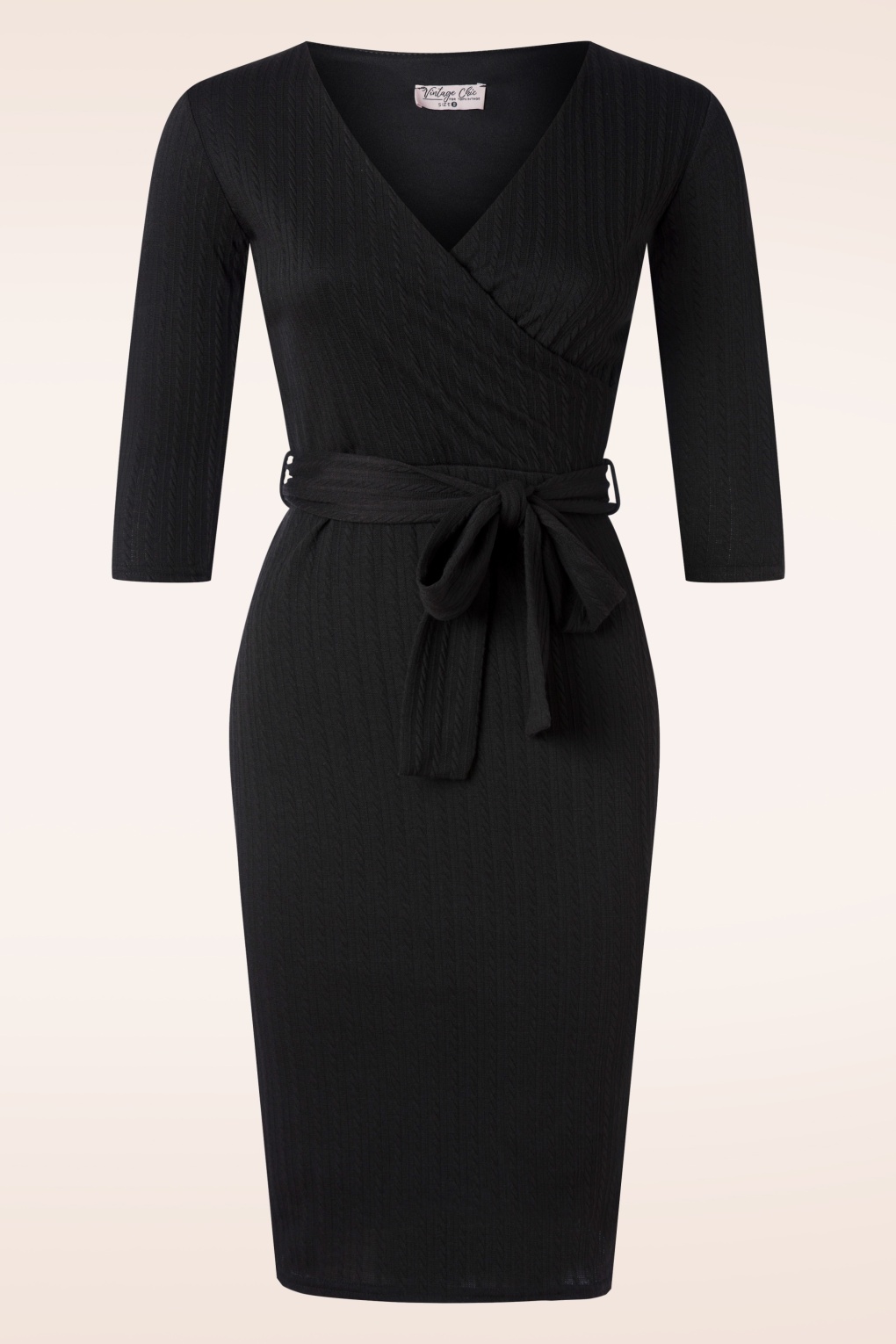 ”Mood: black and fabulous!” Deze beauty is uitgevoerd in een iets dikkere en stretchy zwarte kabelstructuur stof, dat heerlijk draagt en je rondingen perfect accentueert! * V-halslijn met vaste overslag * 3/4 mouwen * Geheel gevoerd * Afneembaar striklint, voor een extra ‘snatched’ taille * Geen rits of knopen; aantrekken en ready to go! * Valt bij een lengte van 1.70 m net boven de knie