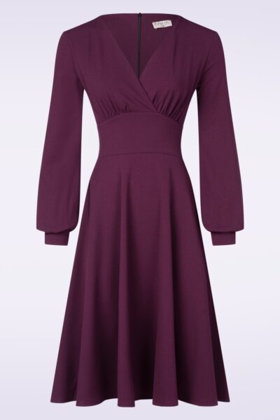 Vrouwelijk en flirty is deze Helaine swing jurk Ze heeft een vaste overslag met plooitjes, lange pofmouwen en loopt vanaf de taille uit in een zwierige semi-swing rok. Uitgevoerd in een soepel en stretchy, aubergine gekleurd stofje dat heerlijk draagt. Helaine is echt zo’n veelzijdige jurk die in de kast van iedere vrouw thuishoort! * Semi-swing model * Vaste overslag met plooitjes * Gevoerde top * Lange pofmouwen * Blinde rits achterzijde * Valt bij een lengte van 1,70 m over de knie