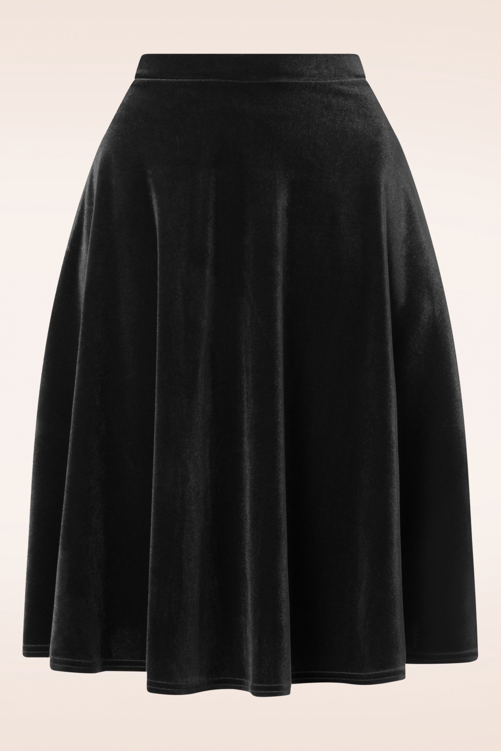 Feestdagen of gewoon een dagje full glamour? Deze 50s Sheila Swing Skirt in Black Velvet is jouw sidekick! Deze beauty wordt hoog in de taille gedragen en waaiert prachtig uit waardoor je een super vrouwelijk zandloper figuur krijgt, oh la la. Uitgevoerd in een soepel vallende, stretchy, zwarte fluwelen stof die mooi glanst zodra er licht op valt. Niets is zo charmant als een vrouw in glanzend fluweel! * Swing rok * Zijwaartse steekzakken * Geen rits of knopen * Elastische taille * Valt net over de knie bij een lengte van 1,70 m