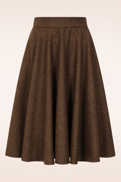 “Cocoa chic, swingin’ sleek!” Deze prachtige swingrok is een tijdloze must-have voor dit seizoen. Ze heeft een flatterende hoge taille en valt sierlijk uit in een zwierige swingrok die elegant met je meebeweegt. Uitgevoerd in een stevige maar soepele wolmix (zonder stretch) in rijk gemêleerd chocoladebruin: stijlvol, warm en eindeloos te combineren. * Swing rok * Zijwaartse steekzakken * Rits- en knoopsluiting achterzijde * Volledig gevoerd * Valt over de knie bij een lengte van 1,70 m