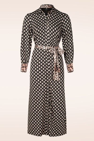 “Bold print, zero drama… this maxi keeps it fresh, fierce, and jet-set ready.” Steffi heeft een speels kraagje, een knopenreeks en een stoffen riem in de taille zodat deze mooi geaccentueerd wordt. Uitgevoerd in een soepele en stretchy, gladde slinky stof in zwart met een grafische print in wit, leopard details en voorzien van een StayFresh coating. * Maxi jurk * Kraagje * Knopenreeks * Lange (licht poffende) mouwen met manchetten * Afneembare stoffen riem * Reikt tot net boven de grond bij een lengte van 1,70 m