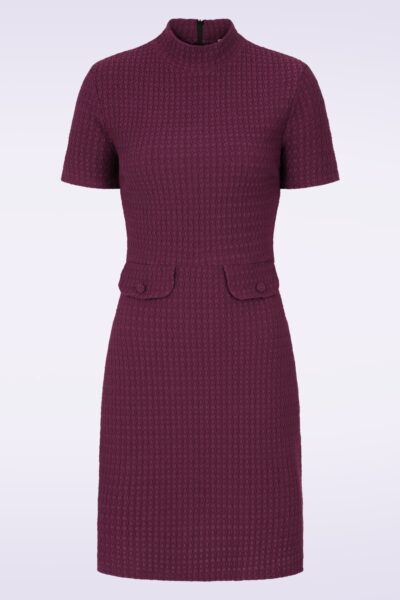 ”Release your MOD-ern fashionista!” 😉 Tessa is uitgevoerd in een iets dikker, stretchy, grof geweven, gerecyclede auberginepaarse stof, die heerlijk draagt. * A-lijn model * Iets opstaand kraagje * Korte mouwtjes * ‘Faux’ klepzakjes * Blinde rits achterzijde * Gerecycled polyester * Valt bij een lengte van 1.70 m net boven de knie