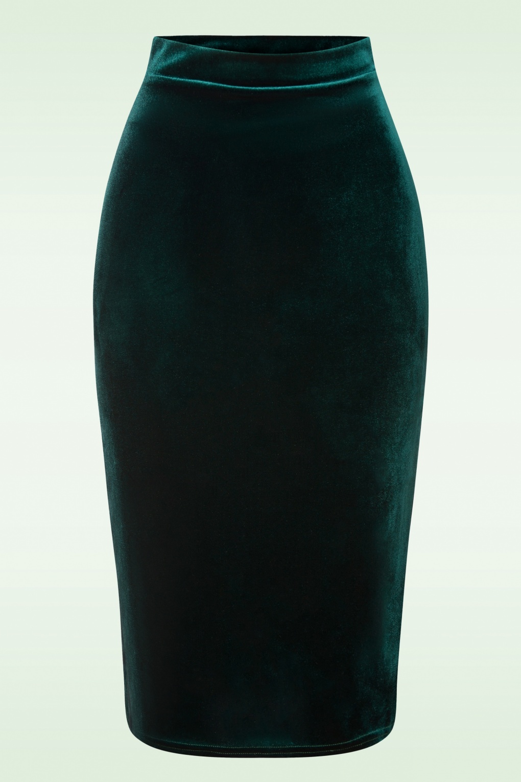 Home > 50s > Topvintage exclusive ~ Glendie Velvet Pencil Rok in Flessen Groen