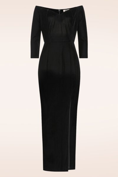 “When glamour calls, she answers in velvet!” Laat je innerlijke diva schitteren in deze betoverende fluwelen maxi jurk. Ze heeft 3/4 mouwen die off-shoulder gedragen kunnen worden en een elegante sweetheart halslijn die een vleugje allure toevoegt. De lange, aansluitende rok met een hoge split creëert een verleidelijke look die bij elke stap in beweging komt. Uitgevoerd in een zachte, stretchy fluweelachtige stofmix die niet alleen luxueus oogt, maar ook heerlijk comfortabel draagt. * Maxi jurk * Subtiele sweetheart halslijn met siliconen biesjes * 3/4 mouwtjes met elastiek die off-shoulder gedragen kunnen worden * Rits- en haaksluiting achterzijde * Voorzien van een hoge split * Reikt bij een lengte van 1,70 m tot aan de enkel