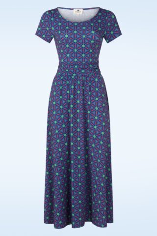 ”Live life in colour!” Deze maxi jurk is uitgevoerd in een zachte en stretchy, blauwe EcoVero viscosemix, die heerlijk draagt en voorzien is van een kleurrijke, retroprint. * Maxi jurk * Ronde halslijn * Korte mouwen * Geplooide tailleband * Geen rits of knopen; aantrekken en ready to go! * Reikt tot aan de grond bij een lengte van 1,70 m