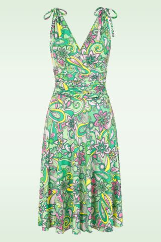Topvintage exclusive ~ Grecian Floral jurk in groen en roze
