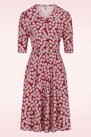 ”May you blossom like a flower!” Deze prachtjurk heeft 3/4 pofmouwen, handige steekzakken en geeft jou een super vrouwelijk silhouet. Ze is uitgevoerd in een soepele en luchtige, bordeauxrode 100% viscose voorzien van lieflijke bloemen. * Semi-swing model * Afgeronde kraag * 3/4 pofmouwen * Reeks verborgen knopen voorzijde * Afneembare riem, voor een extra ‘snatched’ taille * Zijwaartse steekzakken * Valt bij een lengte van 1,70 m tot halverwege de kuit